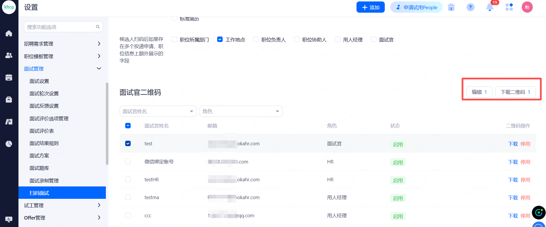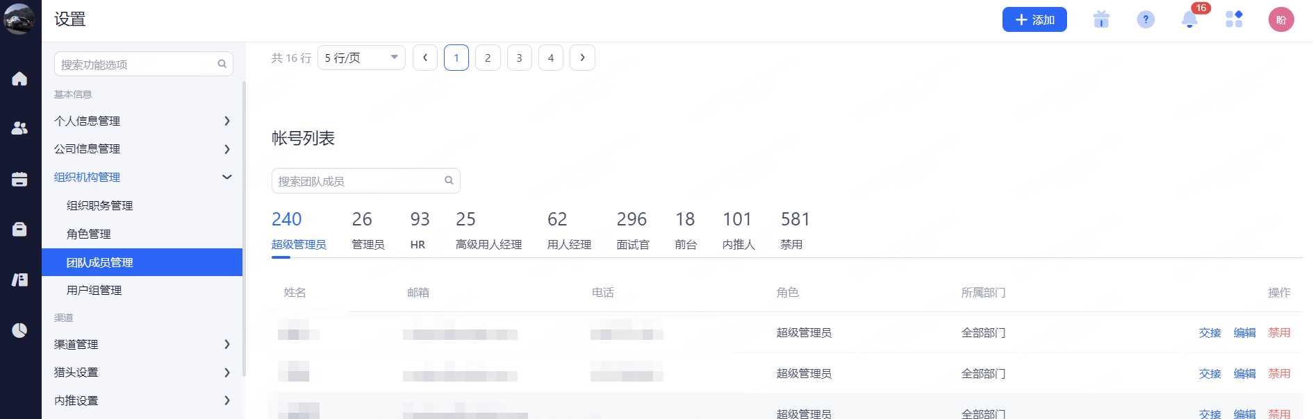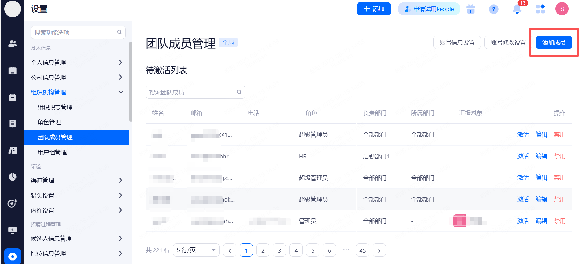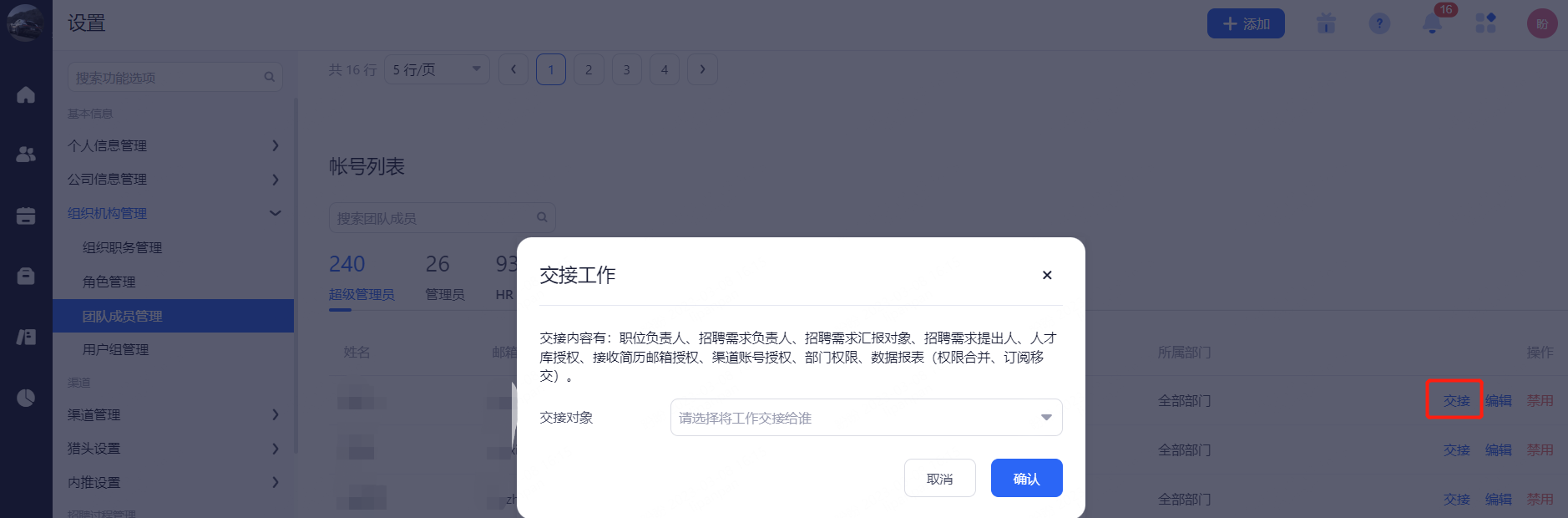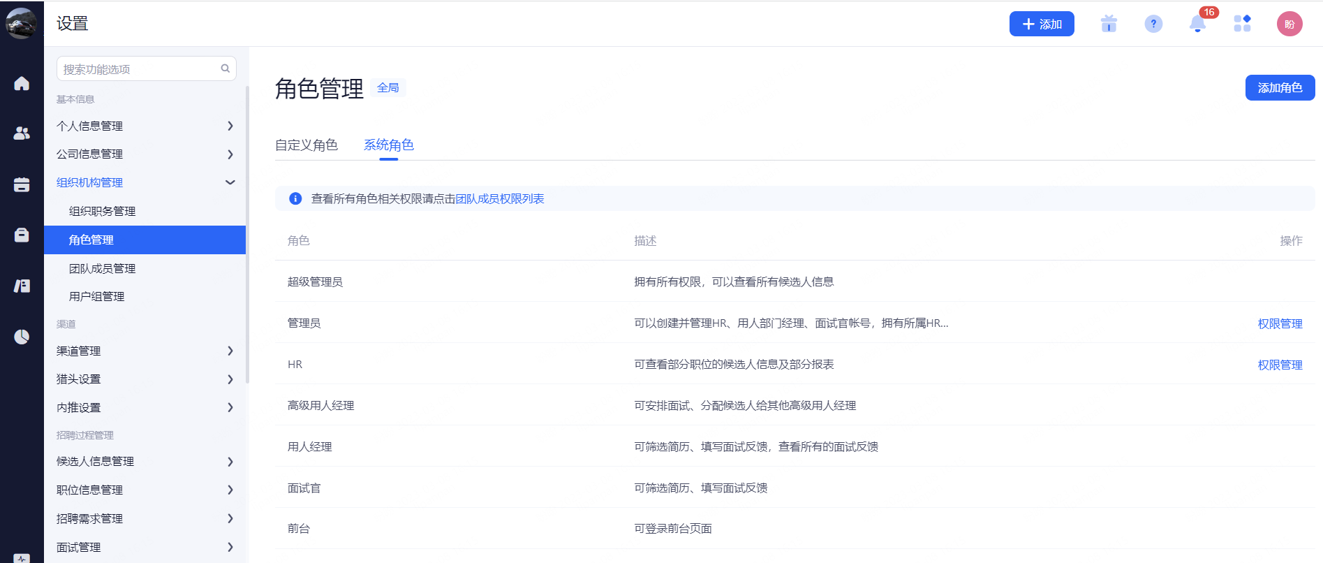 超级管理员:权限最高,可管理团队成员和查看所有候选人信息(一般是公司HR主管)