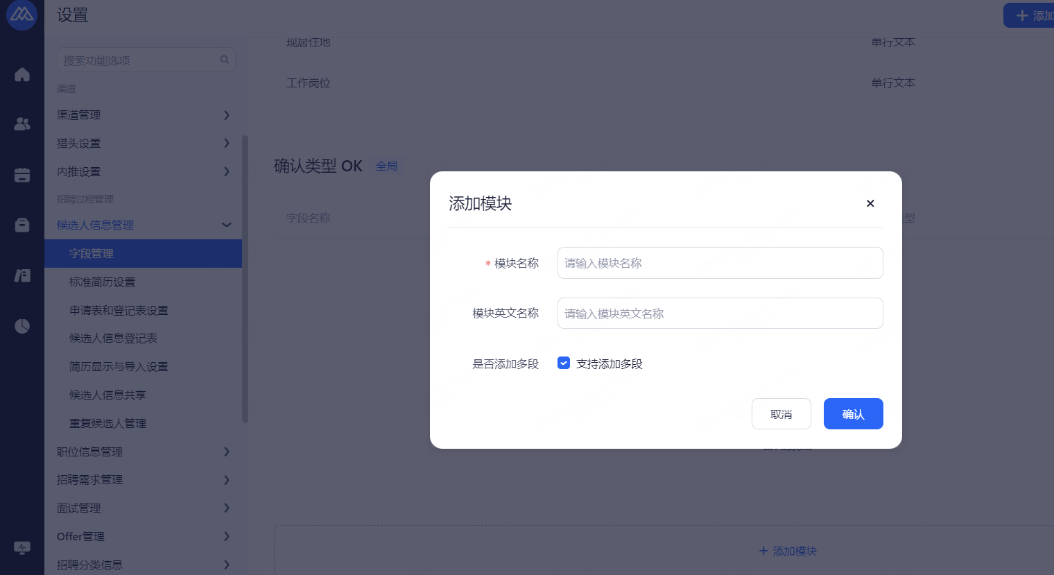 可设置候选人投递记录展示的形式以及候选人投递记录展示的字段。