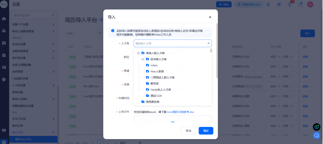 投递规则:HR手动上传不受次数限制。候选人通过第三方招聘网站投递简历如果超过了投递次数,Moka 会对候选人发送邮件通知。