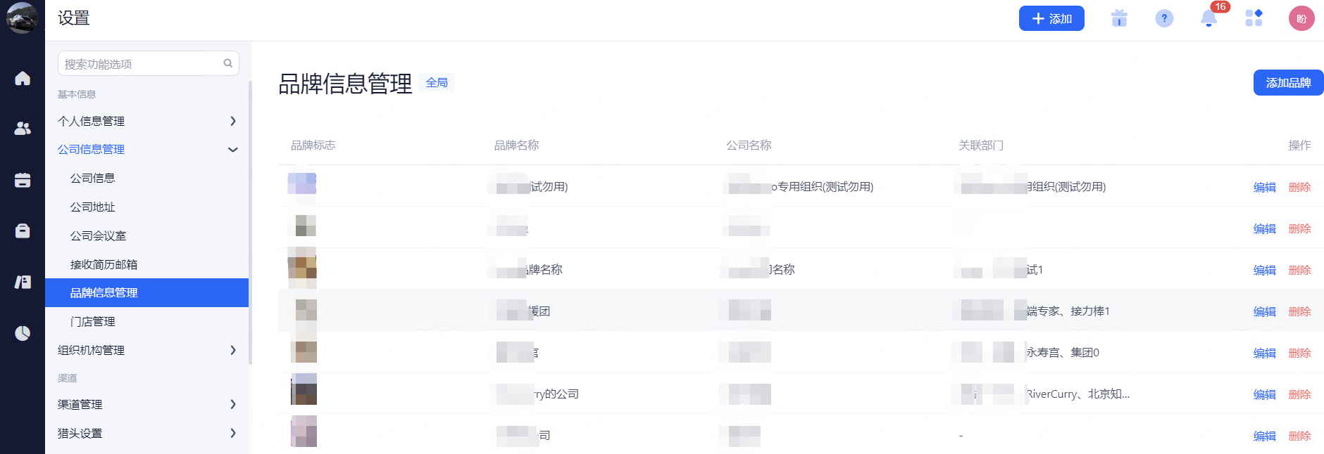 该功能适用于具有多个子品牌的公司,可以在此对自己旗下品牌进行统一规范化管理。