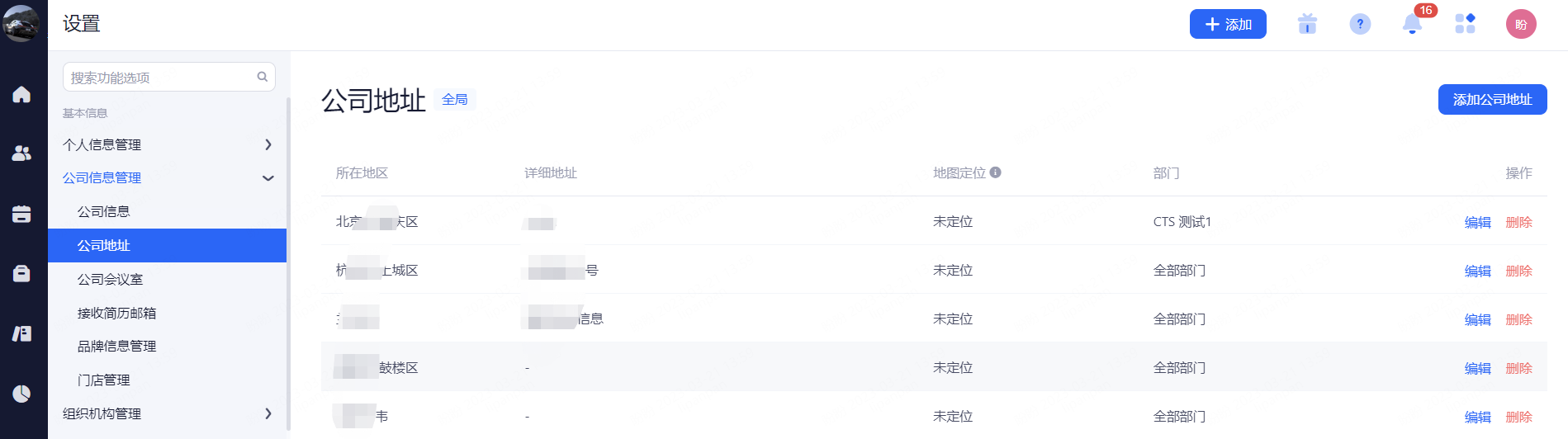 此处维护的信息在发送面试通知/offer入职邮件时候,地址和定位都会出现在邮件下方。