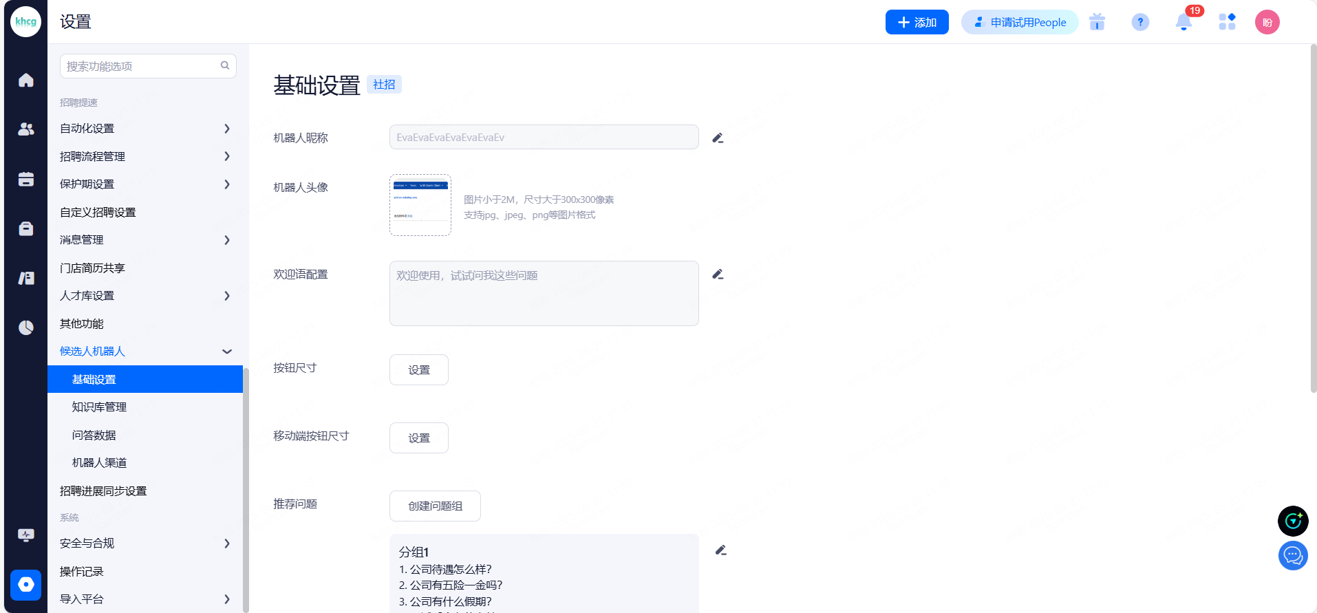候选人机器人的基础设置,可按需求进行配置