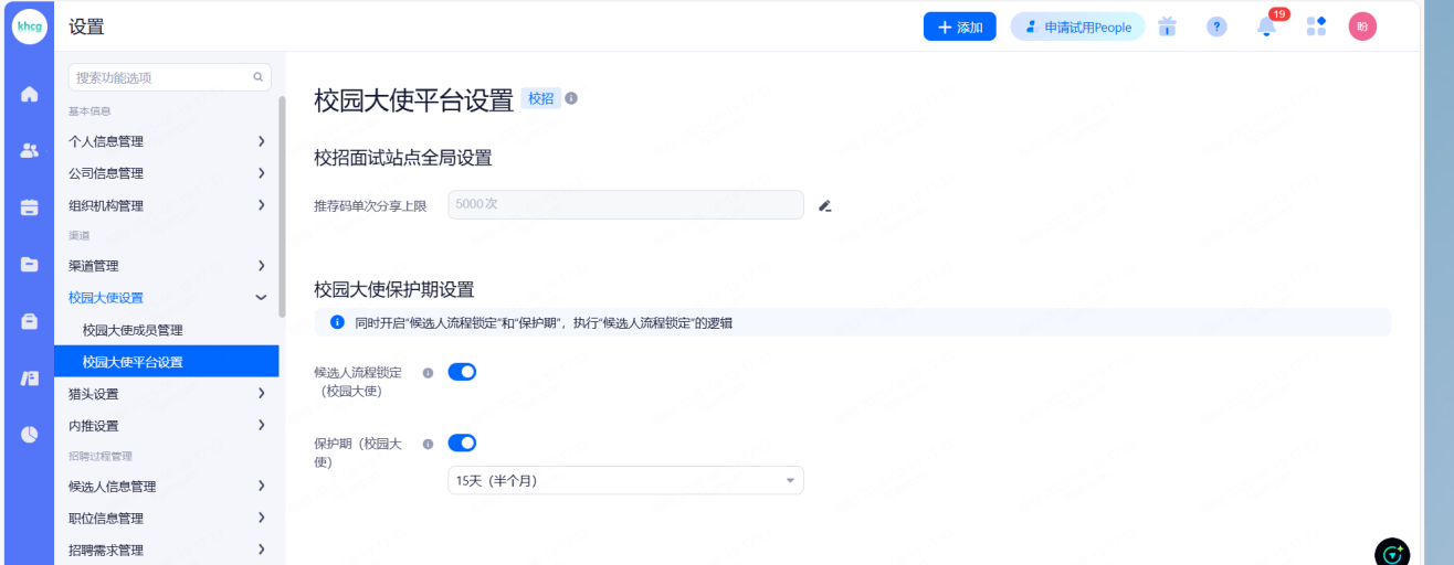 可设置展示给候选人以及校园大使的信息。