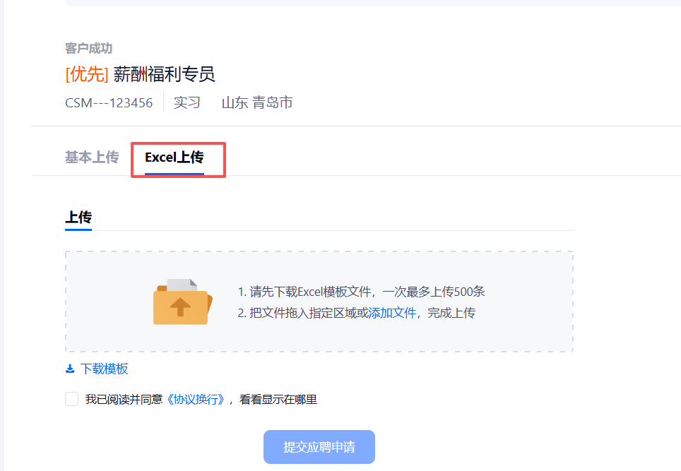 面试官可批量导入,下载模板,补充完后上传即可,面试官与用人经理手机号不必填。(面试官、用人经理不占用付费账号数额)。