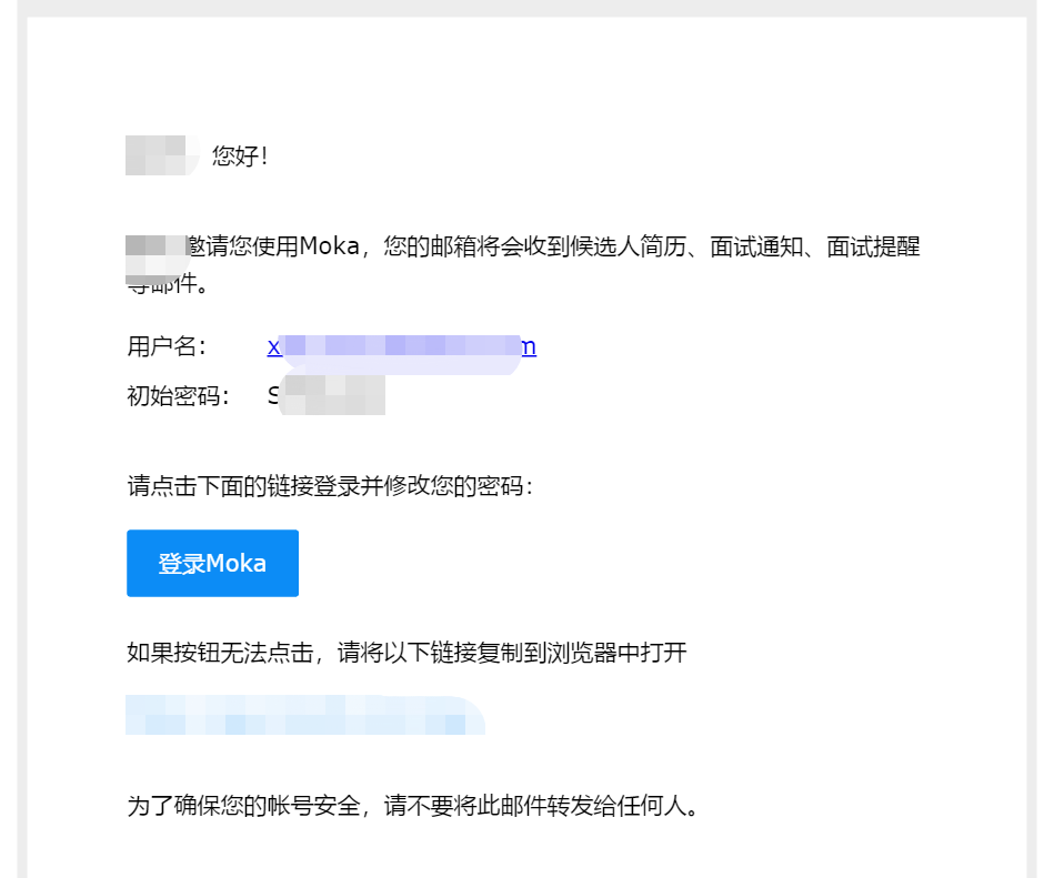 用人经理、面试官、前台受邀成员账号初始密码