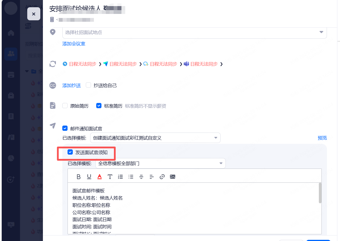 地图定位后,可将地图加入面试通知邮件。