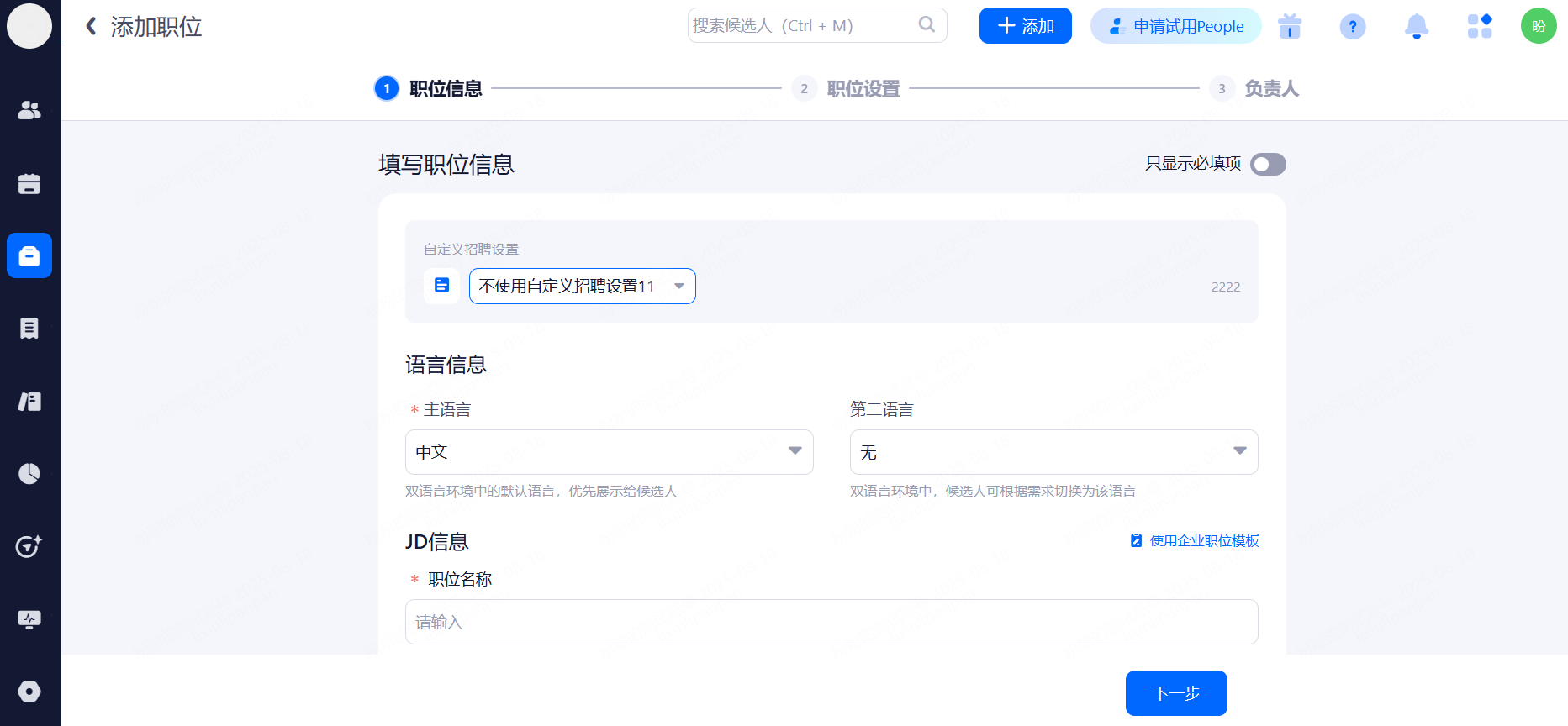 第一步:填写职位信息