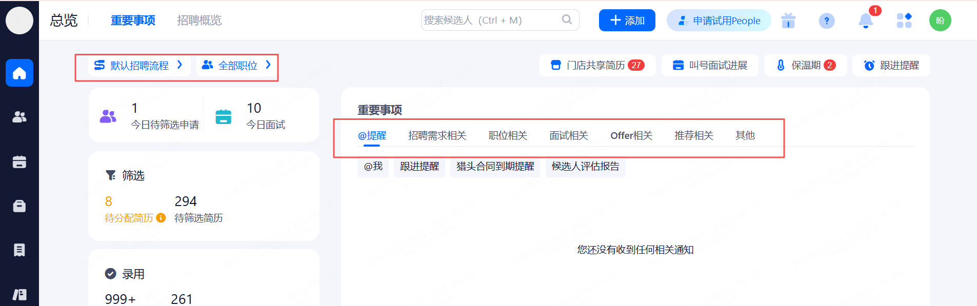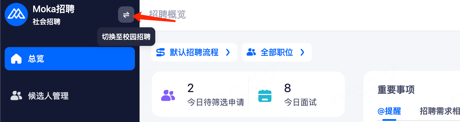 • 总览-重要事项/招聘概览