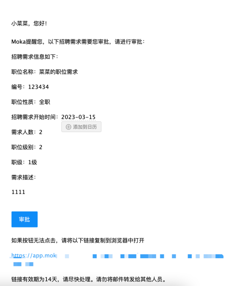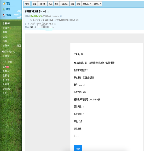 发起审批后,审批人邮箱会收到审批流程,进行需求审批,审批人通过后该需求会生效