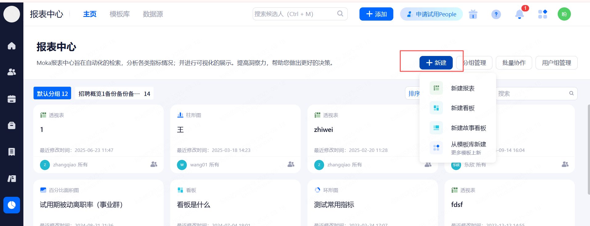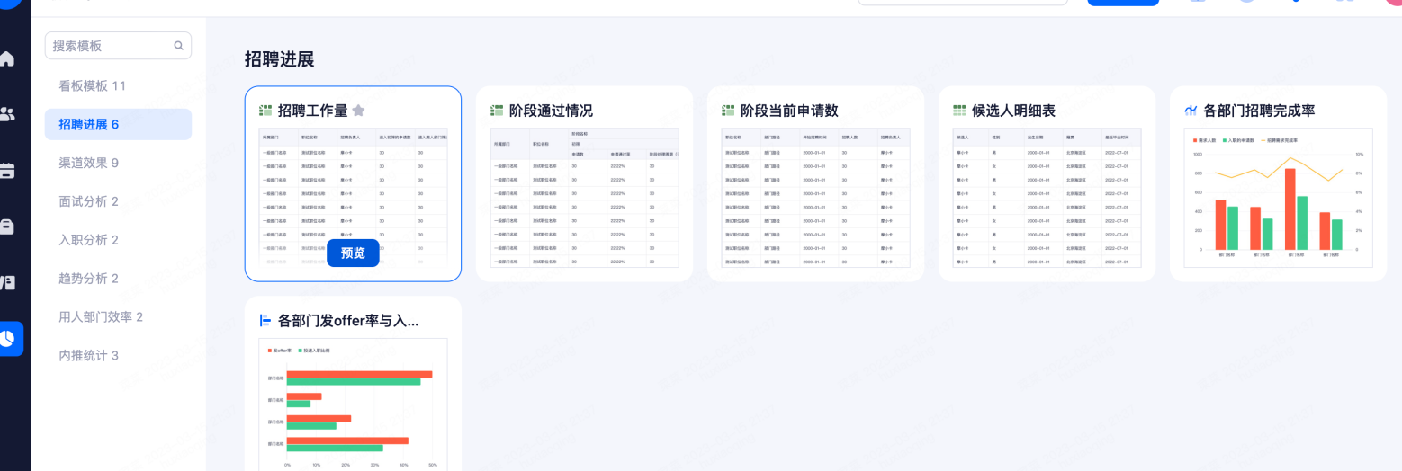 报表中心可以配置出不同纬度的报表,根据实际需求进行创建,报表基于系统内候选人进行统计