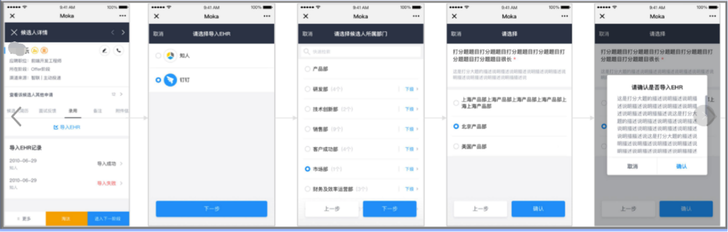 移动端也支持导入EHR:企业对接EHR功能后,可以在移动端将候选人操作导入EHR。支持选择多个EHR服务,支持选择部门,方便HR随时随地操作。