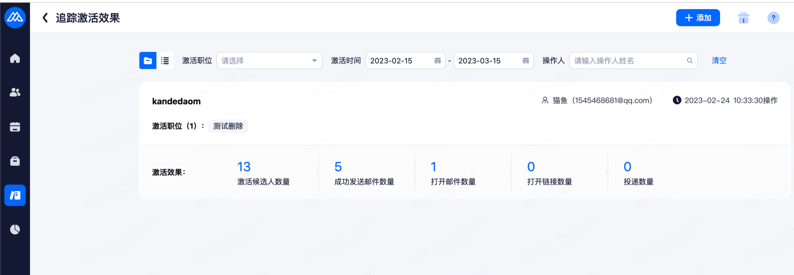人才库激活候选人后,支持以项目或列表形式追踪激活效果,列表形式可更直观的看到候选人的相关信息。