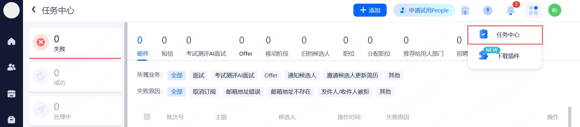 若Offer发送失败,消息中心会有Offer失败提醒;Offer相关的邮件或短信如未发送成功,HR可以在消息中心查看具体原因。(此功能需联系客户经理协助开启)