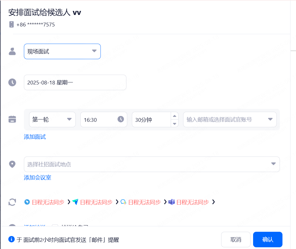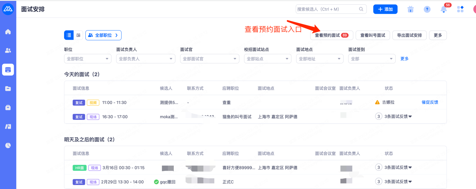 面试安排查看: