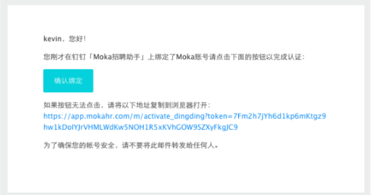邮箱绑定方式,邮箱会收到一封绑定邮件,点击确认绑定: