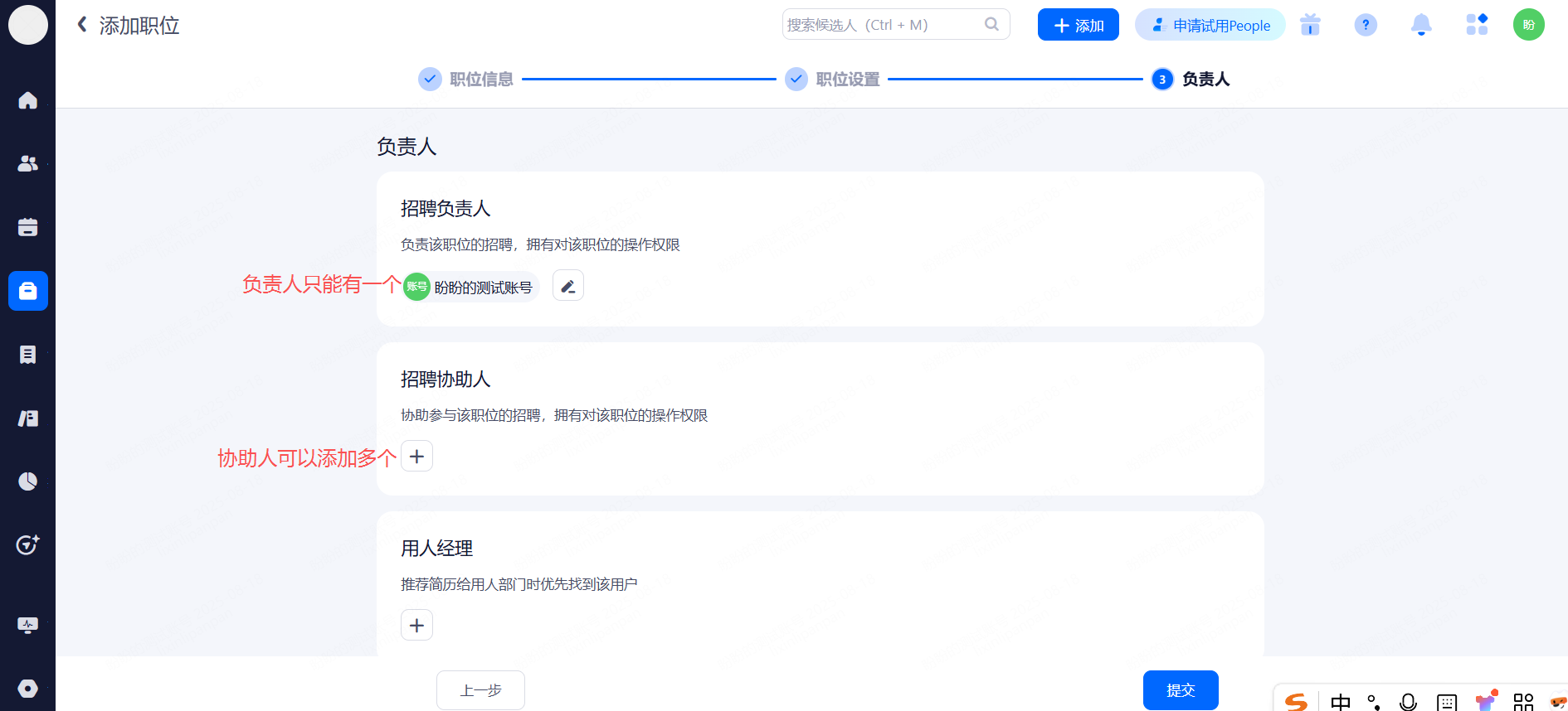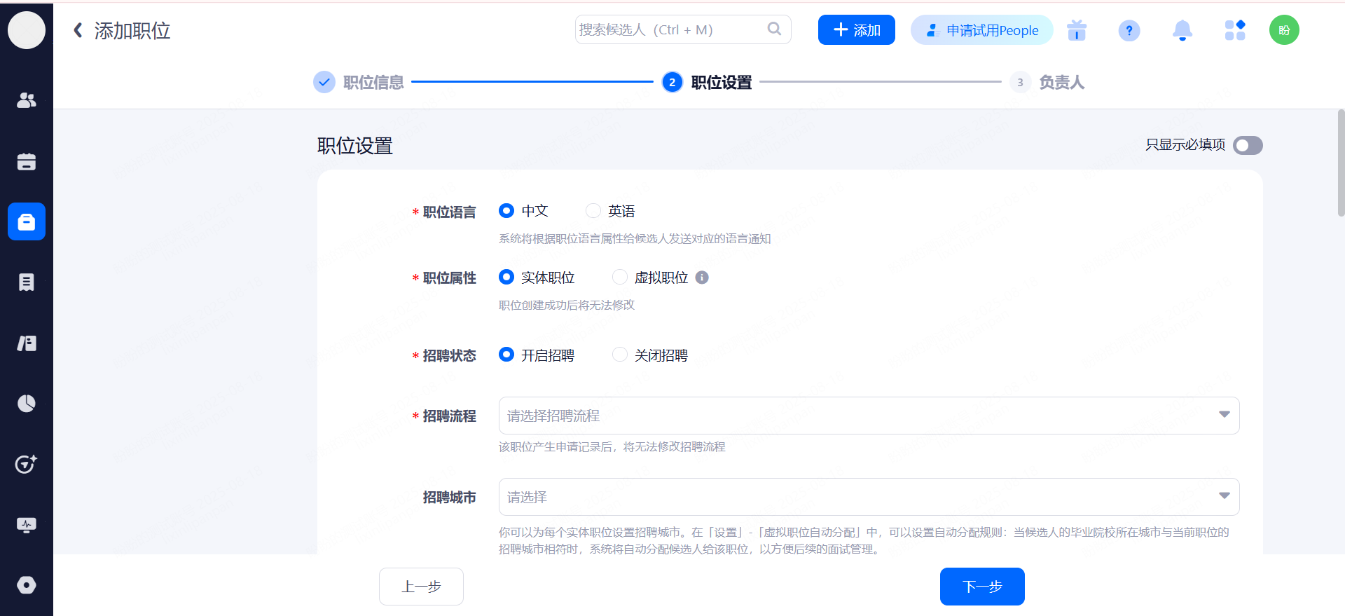 ①招聘负责人:默认为当前使用帐号。