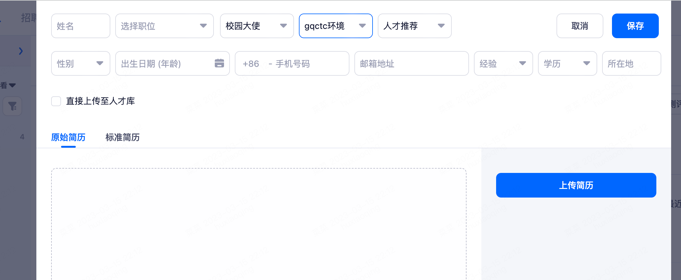 在校招系统里上传候选人时,候选人来源可选择校园大使渠道,方便更快地筛选到校园大使推荐的候选人。