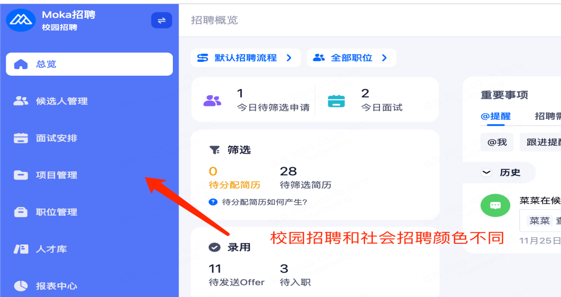 校园招聘的人才库和社会招聘的人才库完全独立。