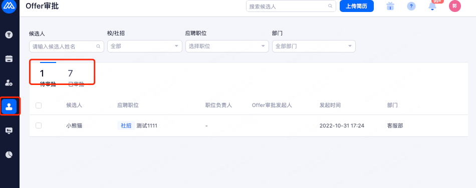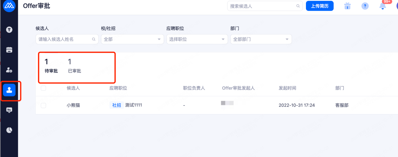 您可以查看待审批和已审批的Offer,点击候选人可查看详情;同时您也可以进行条件查找。