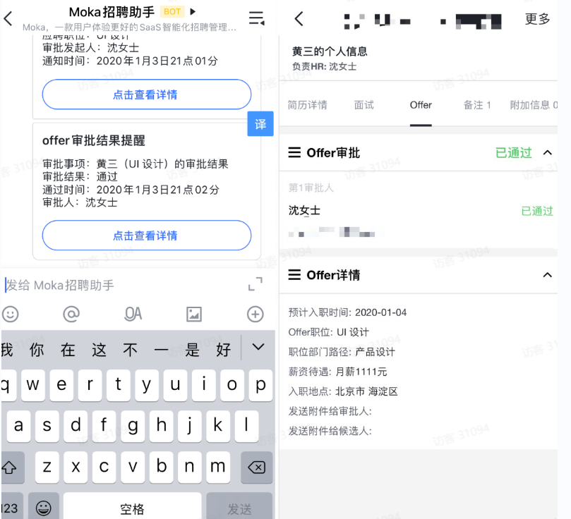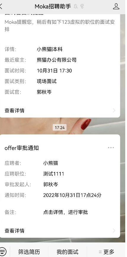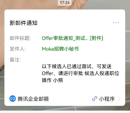 面试官反馈审批结果,发起审批的 HR 将收到相关通知。