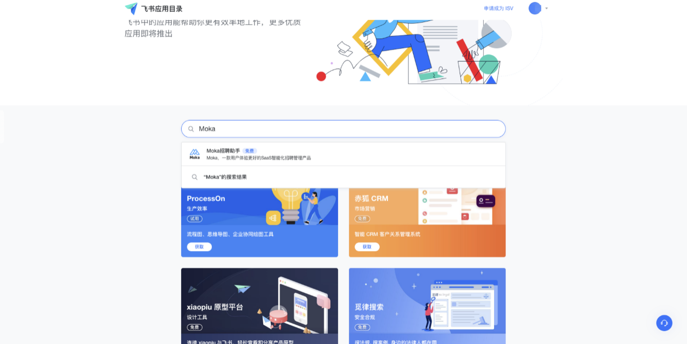 - 飞书管理员获取并配置应用:飞书管理员在应用商店获取“ Moka 招聘助手”应用,并配置可用范围,即哪些员工可见并可用“ Moka 招聘助手”