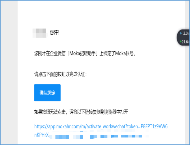 您需要打开企业微信客户端,在工作台中点击“Moka招聘助手”,即可通过邮箱和手机号两种方式绑定激活。
