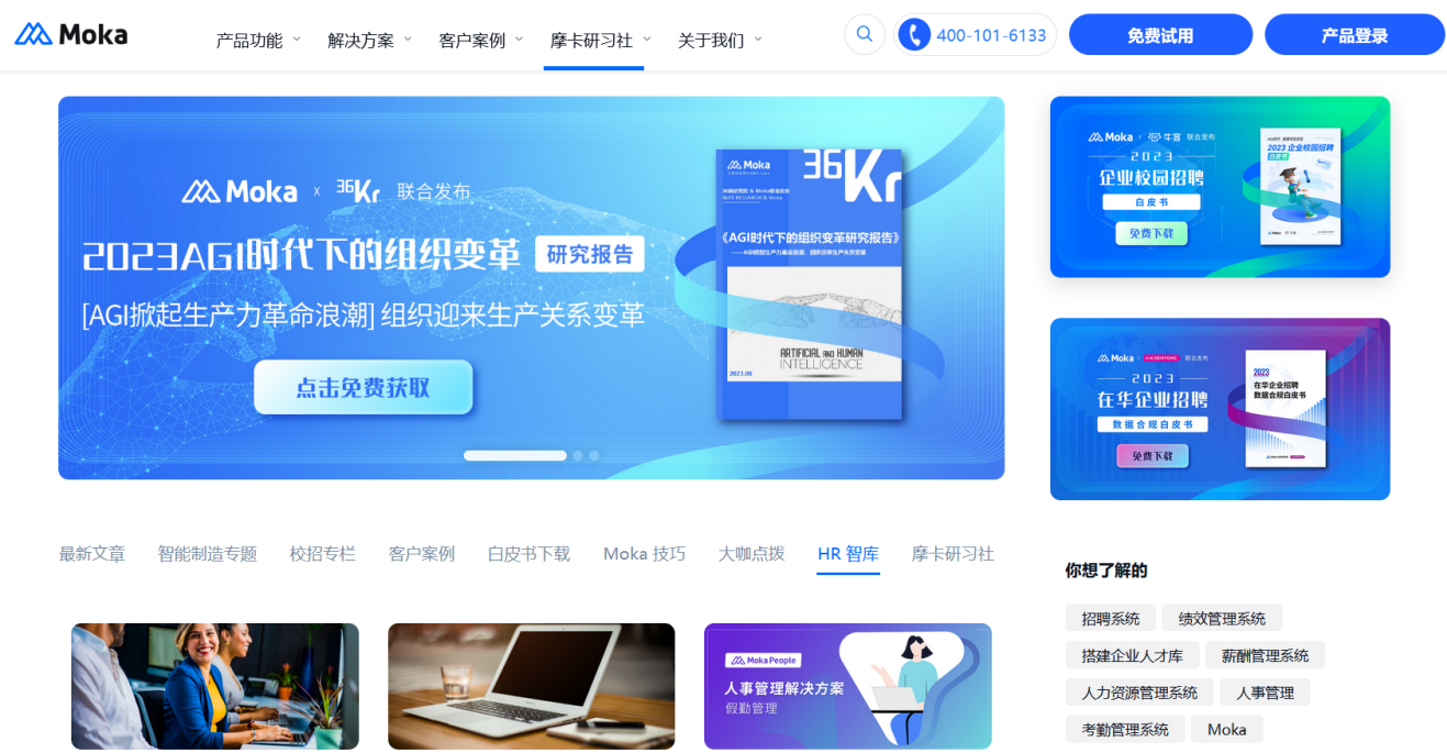 点击右上角的帮助中心按钮,您会跳转到新的页面,查看系统功能指引详情。https://mokahr.udesk.cn/hc