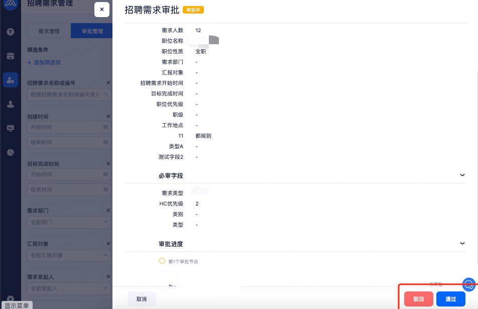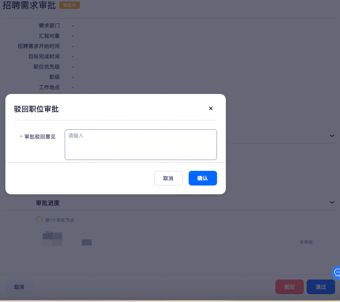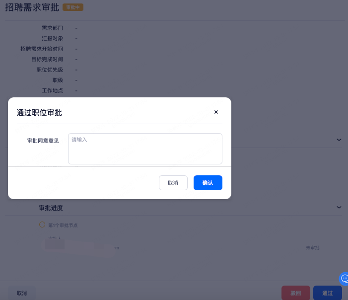 点击“驳回”或者“通过”可以填写对应的审批意见
