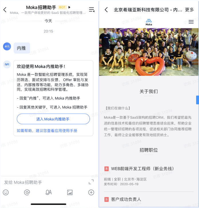 查看内推官网:回复“内推”,点击进入 Moka 内推助手,即可进入企业内推官网,查看内推职位。