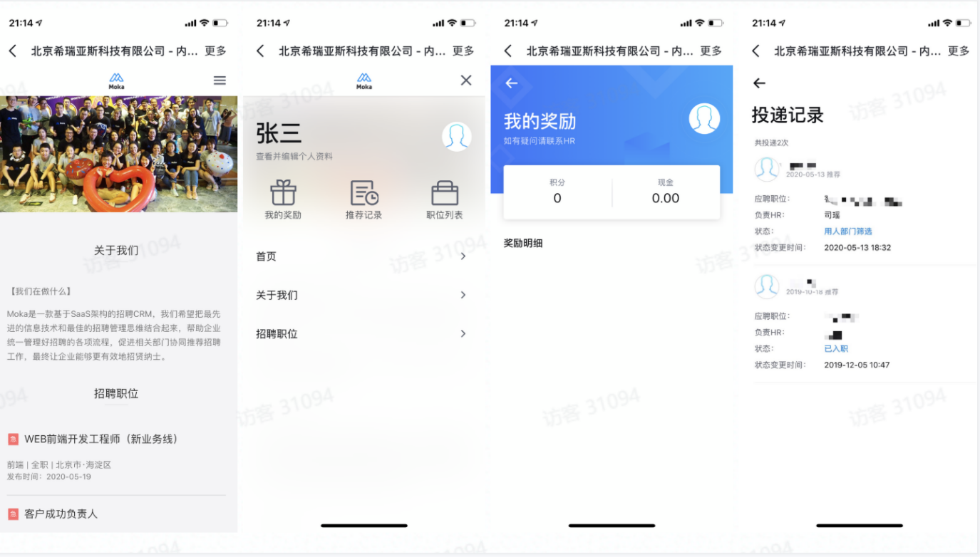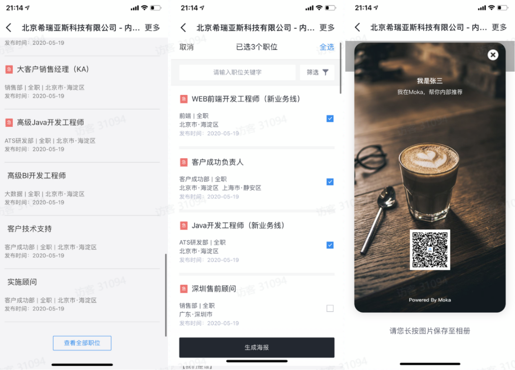 · 用户授权使用:上述可用的用户在工作台中可见“ Moka 招聘助手”