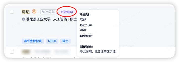 候选人列表页 | 外呼状态、最后沟通结果 |